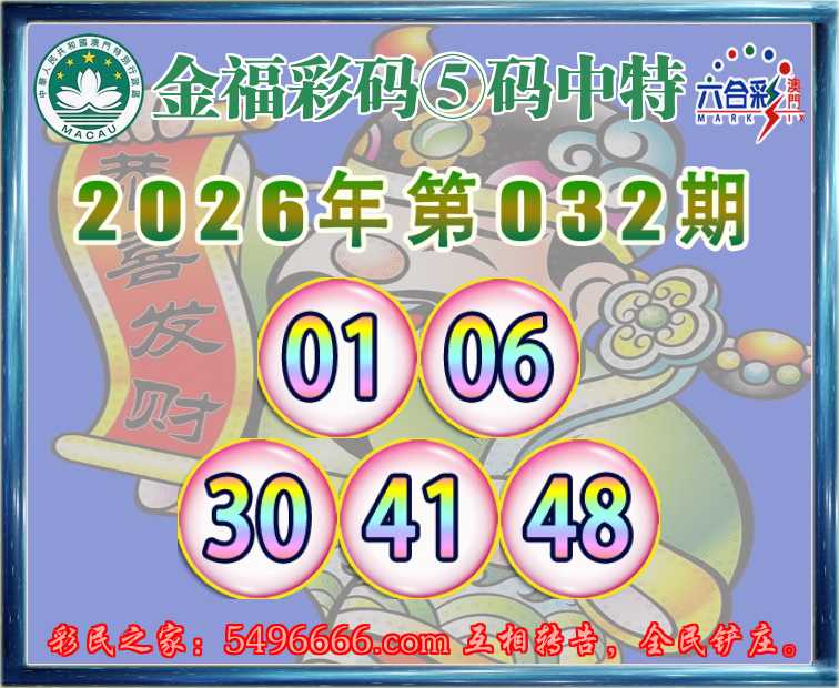 032期:『金福彩码』 🥓⑤码中特🥓【01.06.30.41.48】开:06