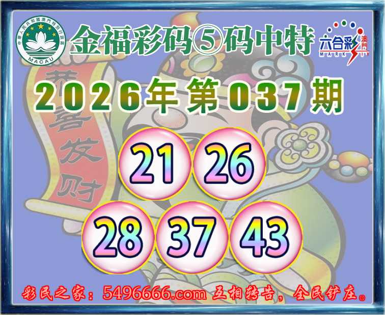 037期:『金福彩码』 🥓⑤码中特🥓【21.26.28.37.43】开:43