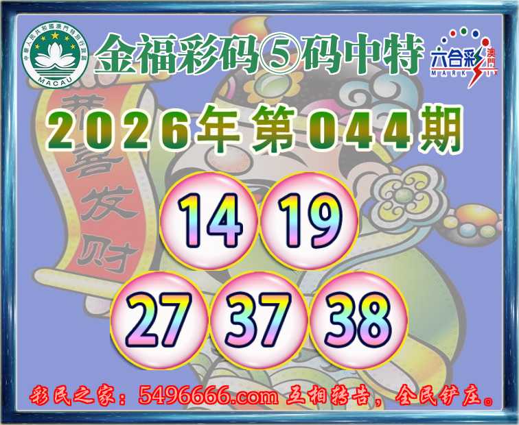 044期:『金福彩码』 🥓⑤码中特🥓【14.19.27.37.38】开:19