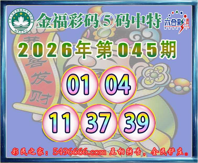 045期:『金福彩码』 🥓⑤码中特🥓【01.04.11.37.39】开:01