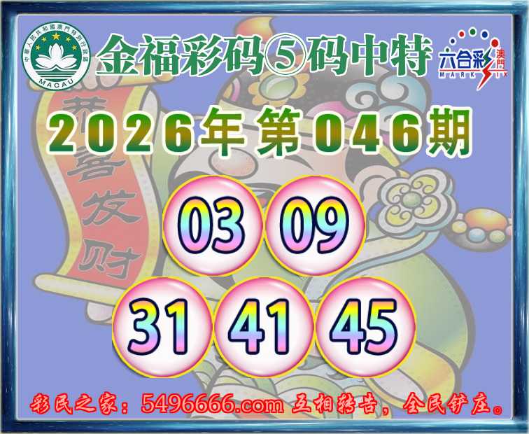 046期:『金福彩码』 🥓⑤码中特🥓【03.09.31.41.45】开:03