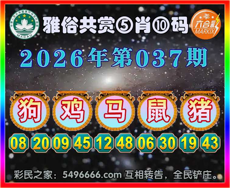 037期:《雅俗共赏》 ♣️⑤肖⑩码♣️【狗鸡马鼠】开:猪43